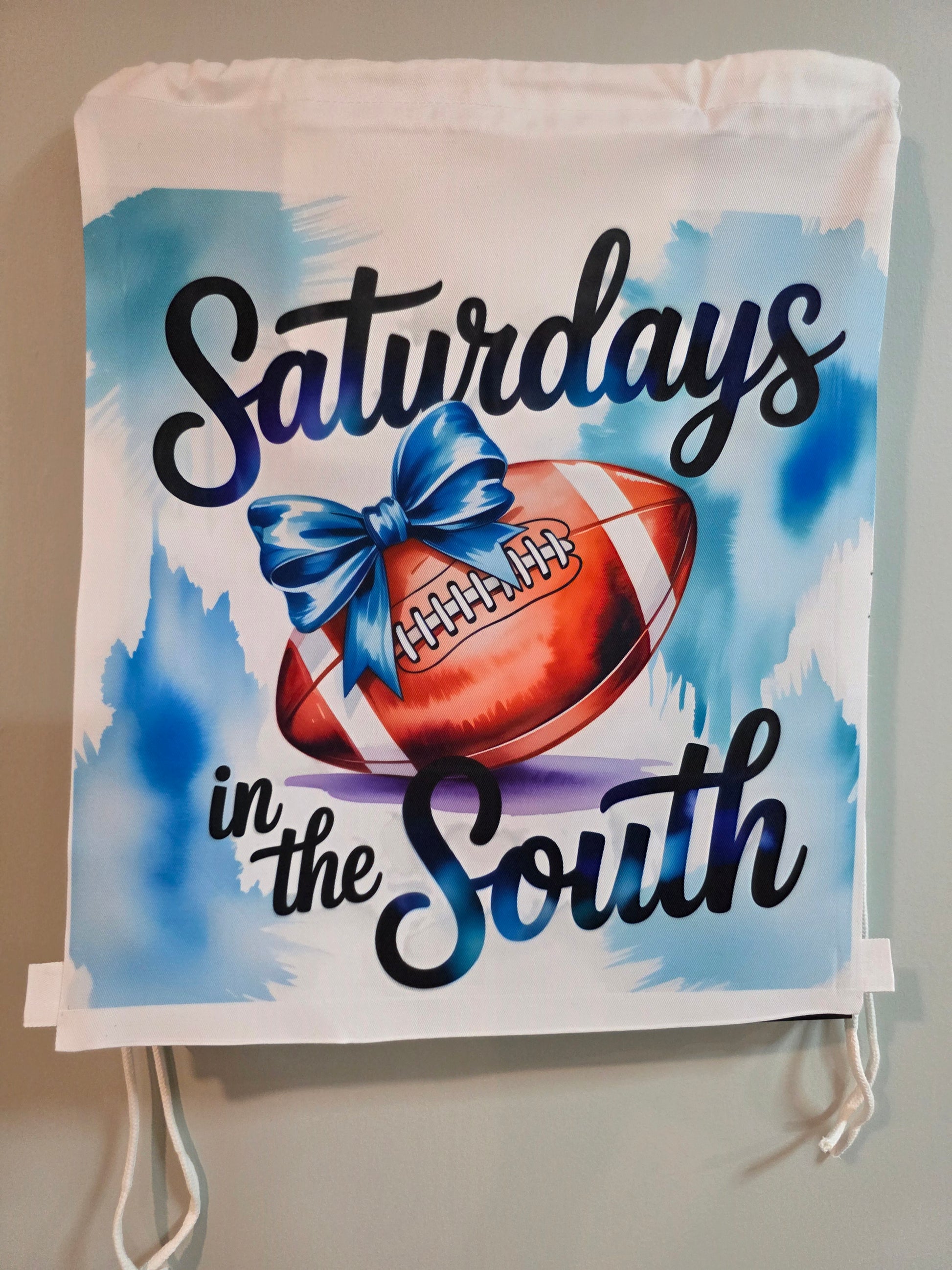 Customize and personalize this nicely constructed drawstring bag/backpack for any occasion. Use as a wedding bag, Christmas gift bag, sports bag, Laundry, trips, events and more. This is our premium drawstring bag. Made of good quality material, corded rope drawstrings that match the bag and a Velcro pocket inside for storage of smaller items.
